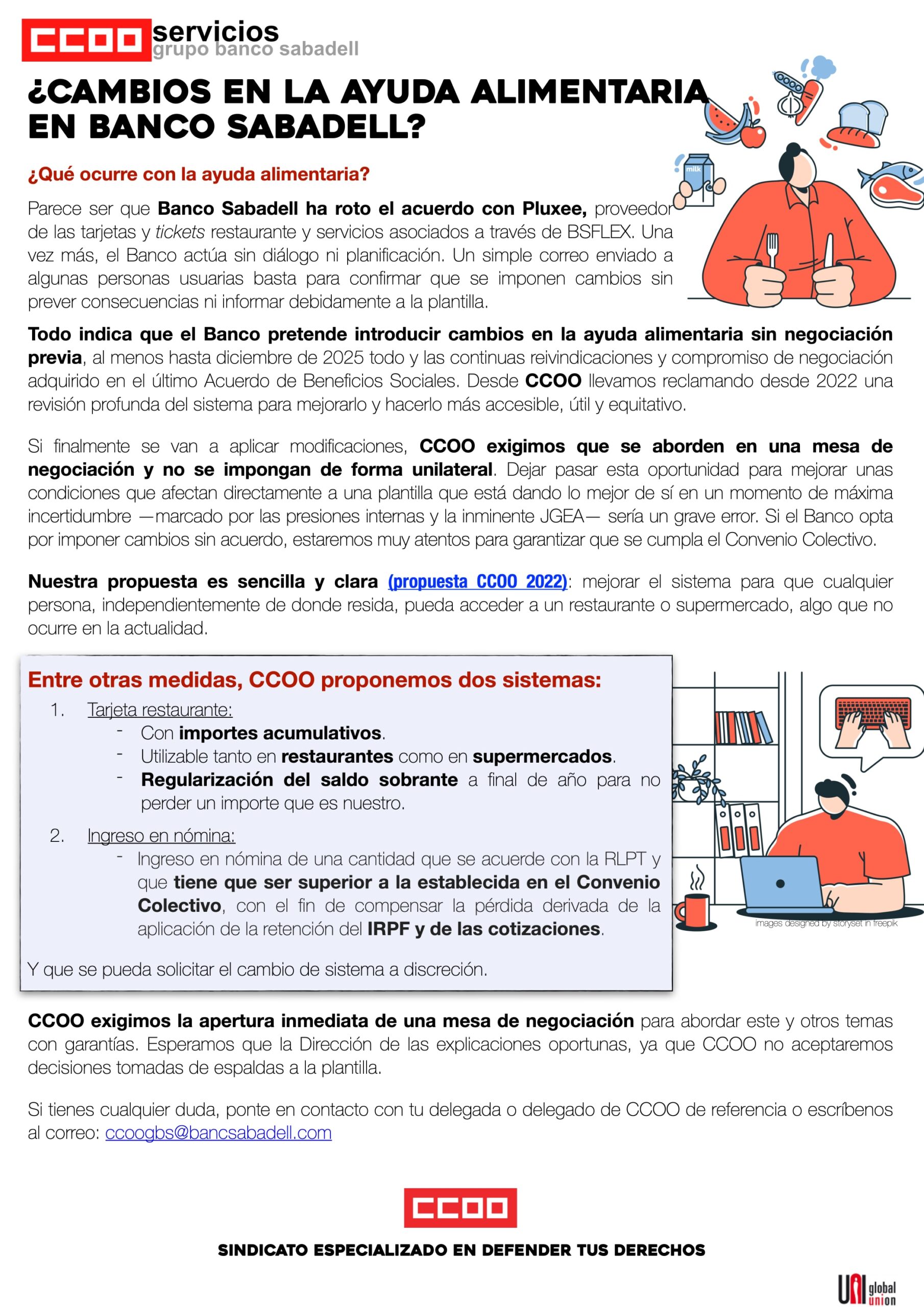 Des de CCOO també plantegem que, mentre continuem negociant, es faça un pagament a compte de l'increment salarial previst. No és gens estrany ni extraordinari: és una manera que les plantilles no continuen perdent poder adquisitiu per culpa del bloqueig de la taula.