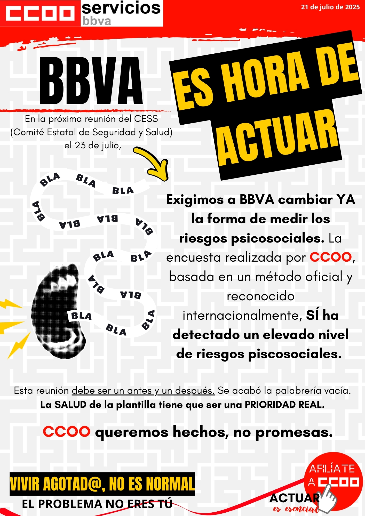 EXIGIMOS A BBVA CAMBIAR LA FORMA DE MEDIR LOS RIESGOS PSICOSOCIALES