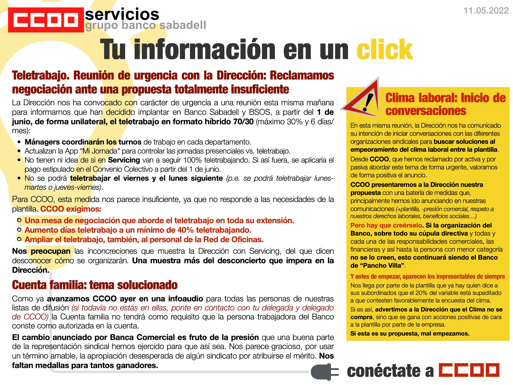 Tal como os contamos en comunicados anteriores, la sección sindical de CCOO interpuso cuatro denuncias a la inspección de trabajo.