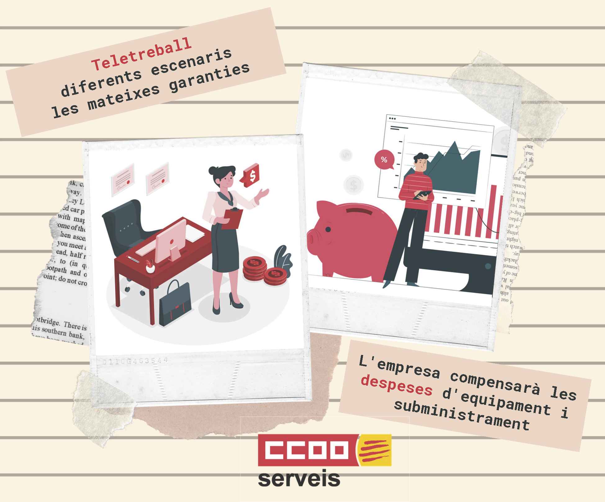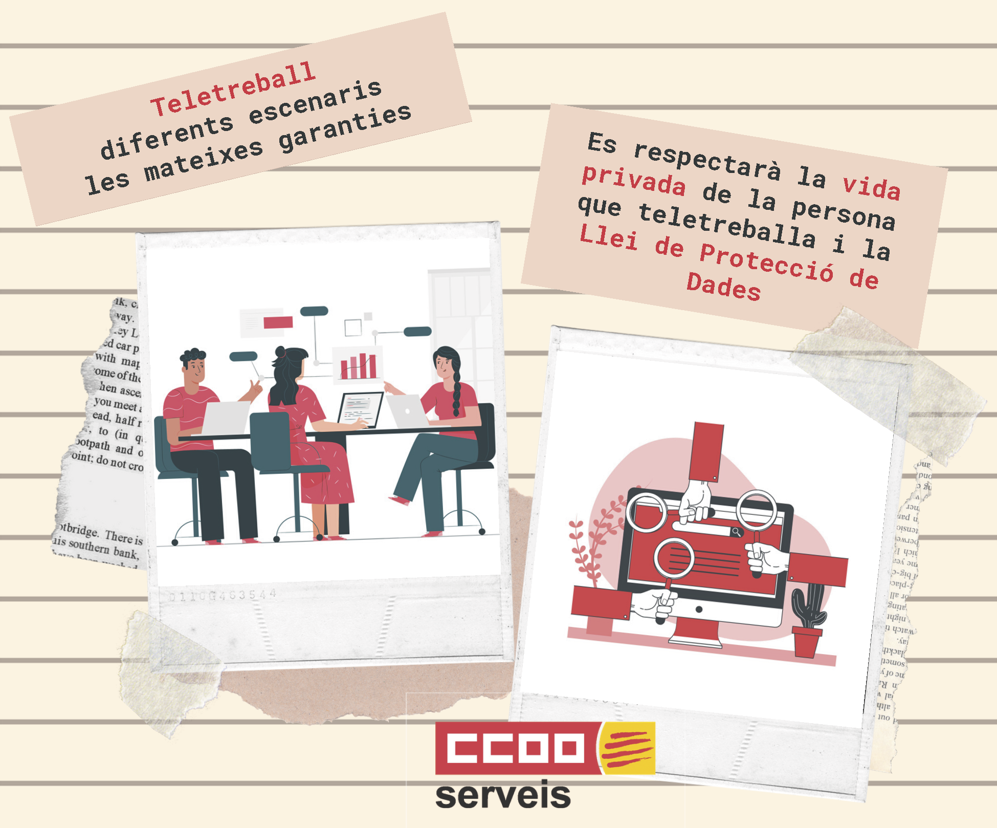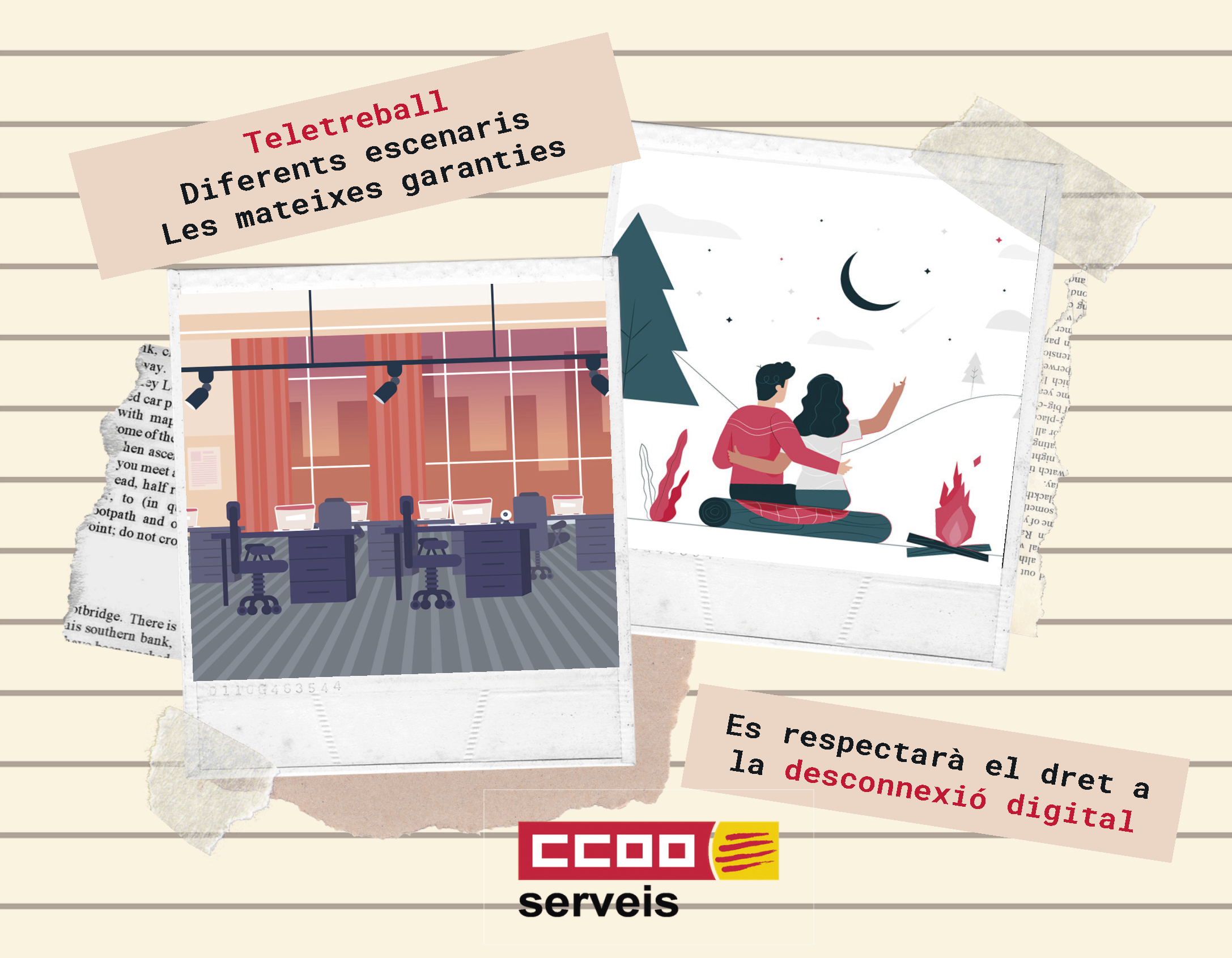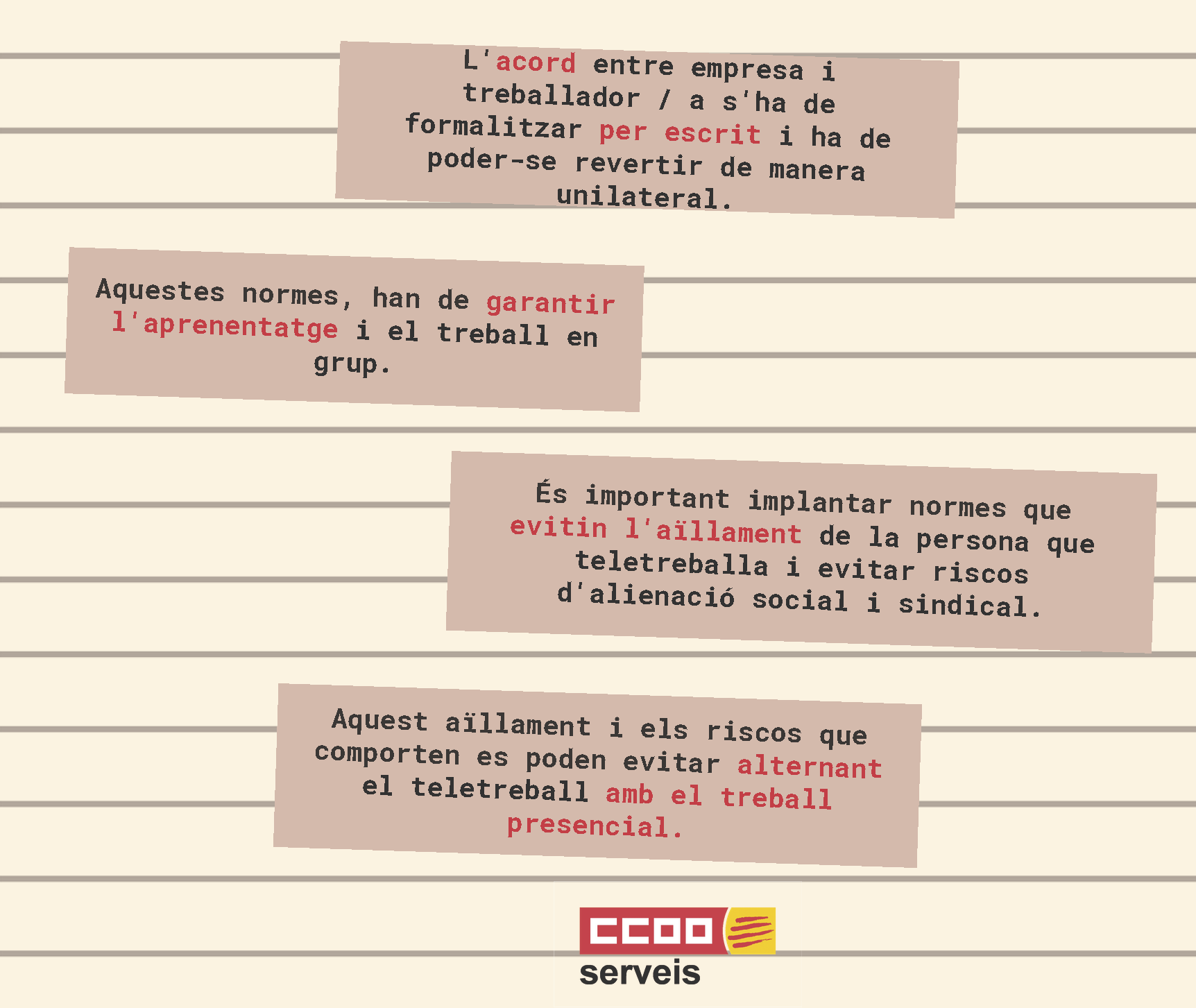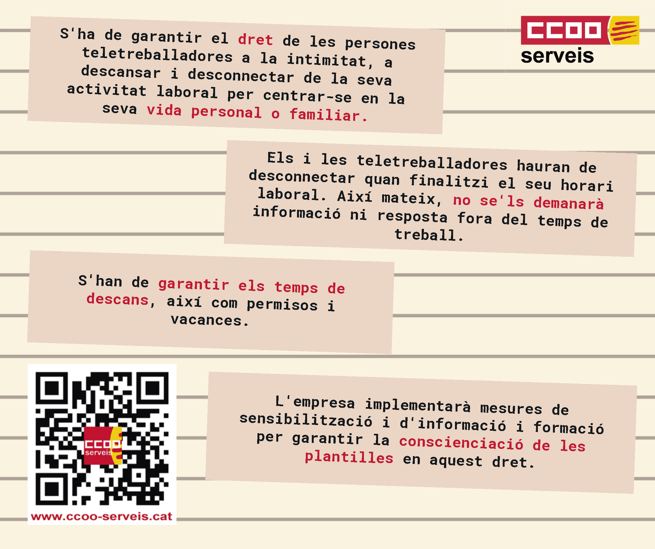 2- La persona que teletreballa ha de tenir les mateixes garanties laborals i d'ocupació que si exercís la seva tasca de manera presencial https://www.ccoo-servicios.es/archivos/catalunya/Teletreball2.pdf