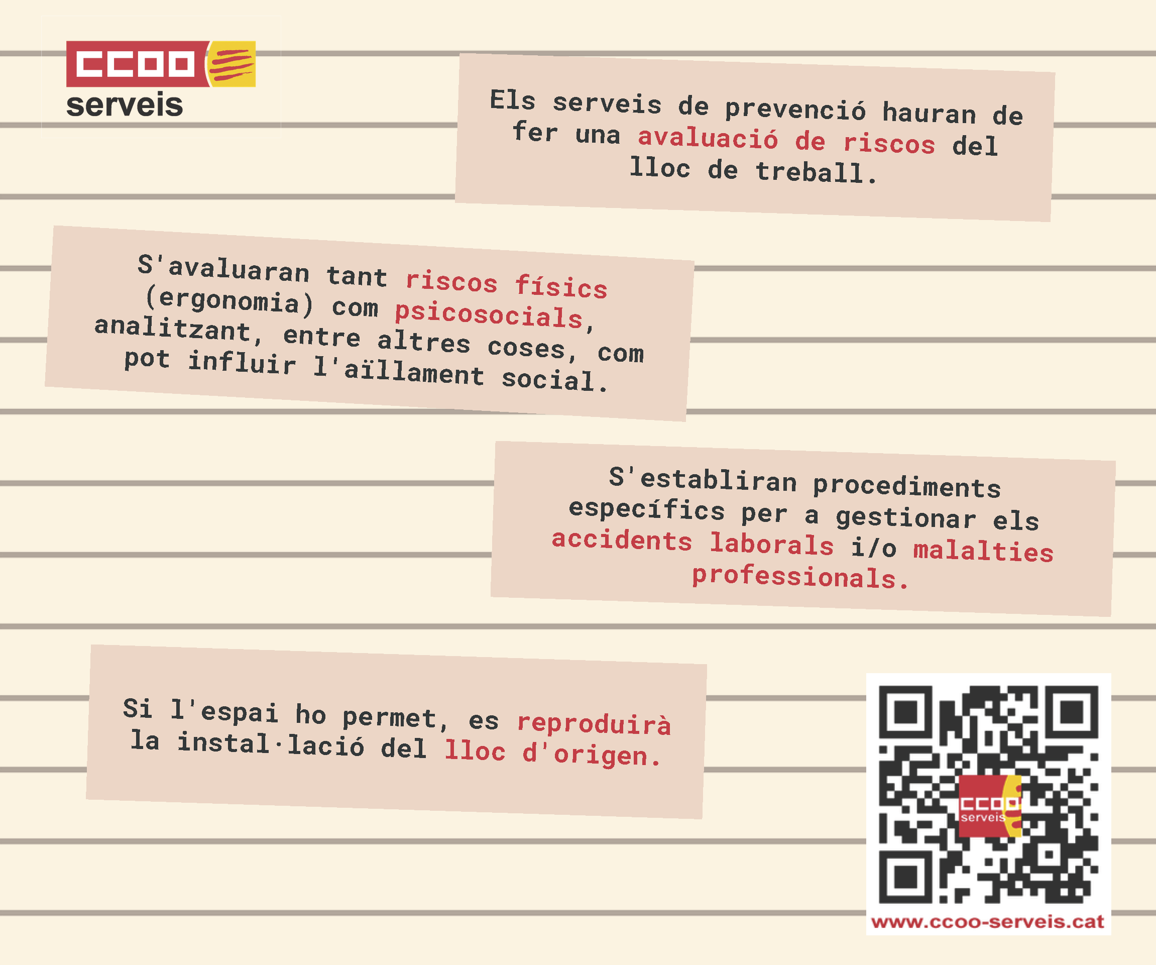 – L'empresa ha d'assegurar que el lloc de treball ha de ser segur i saludable, també quan aquest es troba a la casa de la persona treballadora