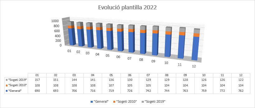 Lo prometido es deuda, tal como os anticipamos en el boletín de enero este mes os presentamos las cifras ya definitivas de 2022. Como veis hemos cerrado el año con una plantilla total un poco por debajo de las 1000 personas, hito alcanzado en noviembre tal como informamos en el boletín de ese mes. Las cifras de altas y bajas os la daremos en un próximo boletín.