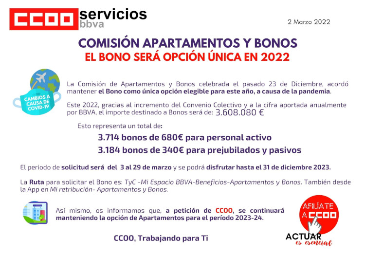 La Comisión de Apartamentos y Bonos celebrada el pasado 23 de Diciembre, acordó mantener el Bono como única opción elegible para este año, a causa de la pandemia.