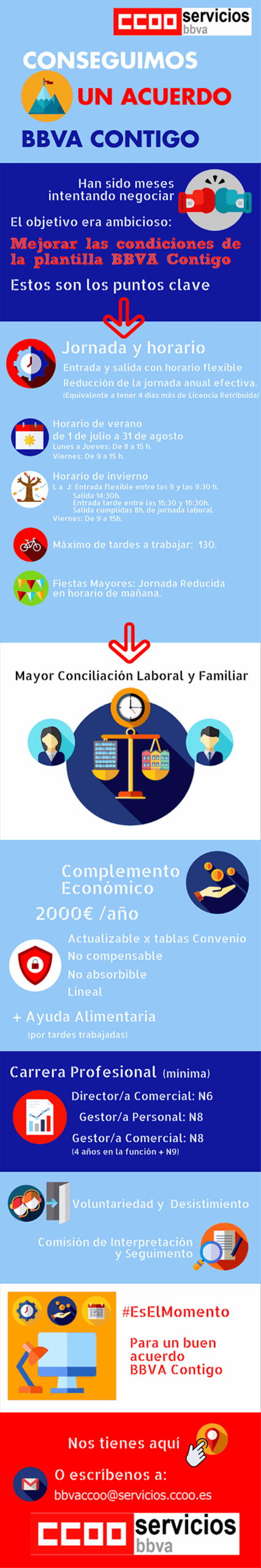 Los tres sindicatos CCOO, UGT y ACB, que representamos el 76,8% de toda la plantilla de BBVA, hemos firmado el Acuerdo BBVA Contigo.