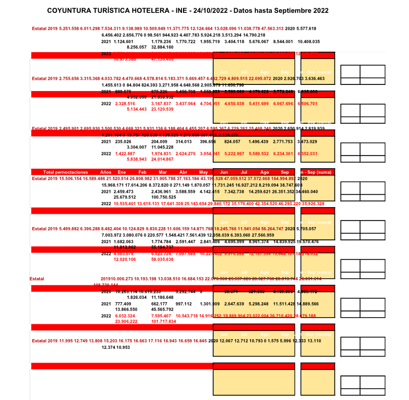 Anexo: Datos coyuntura hotelera hasta Septiembre 2022 inclusive: