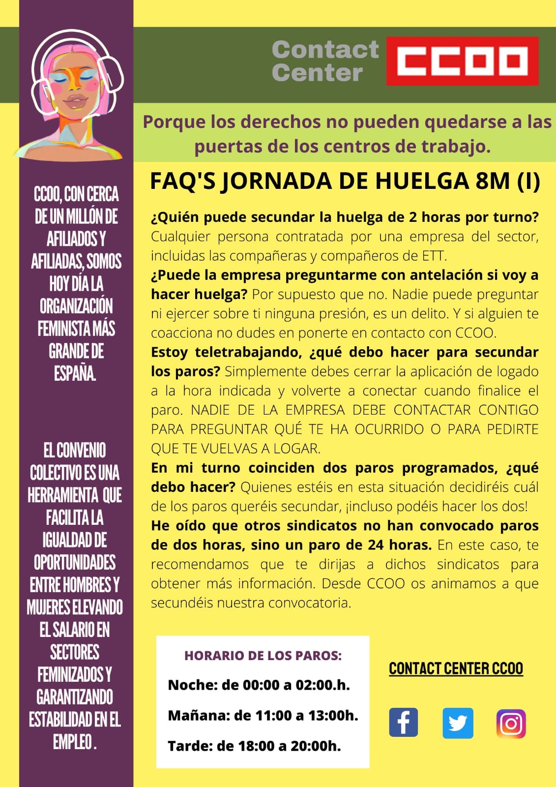 CCOO convoca una jornada de huelga en Contact Center por la situación del Convenio coincidiendo con el 8M