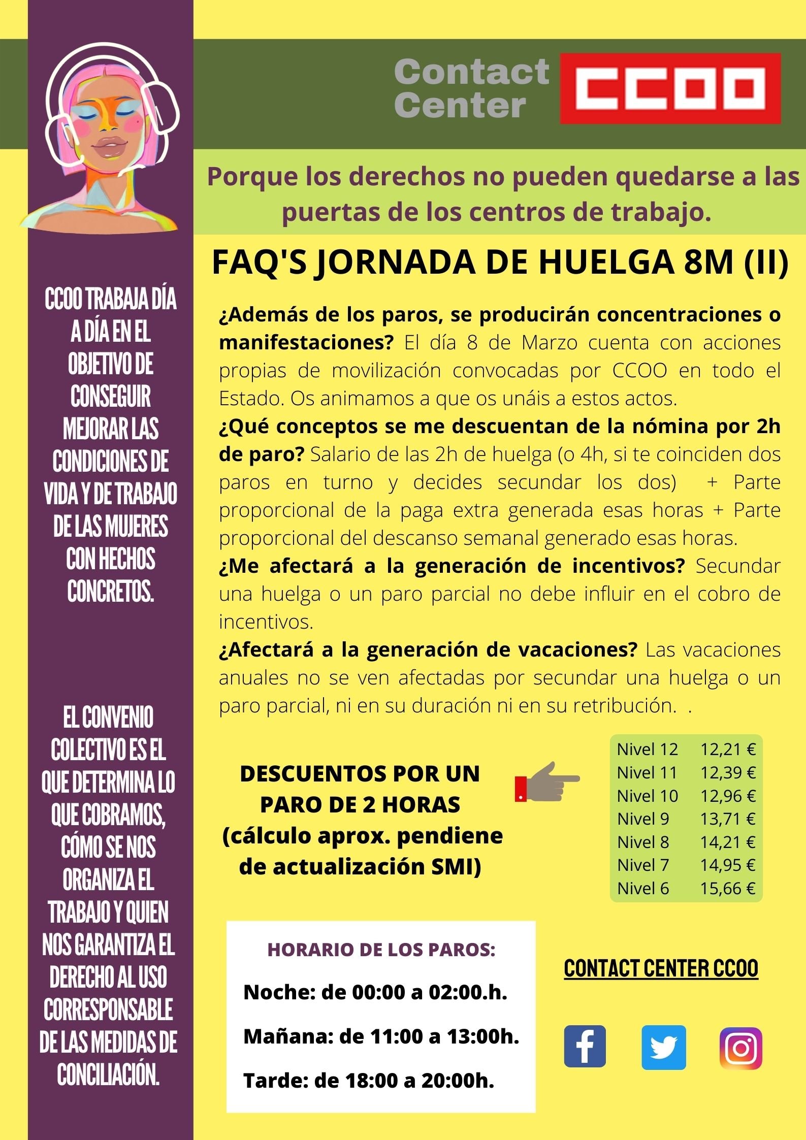 Esta convocatoria de huelga, que se traducirá en paros de dos horas para cada turno (mañana, tarde y noche), tiene como objetivo dar a conocer nuestra situación a la ciudadanía, como personas usuarias y a las empresas principales, como clientes directos.
