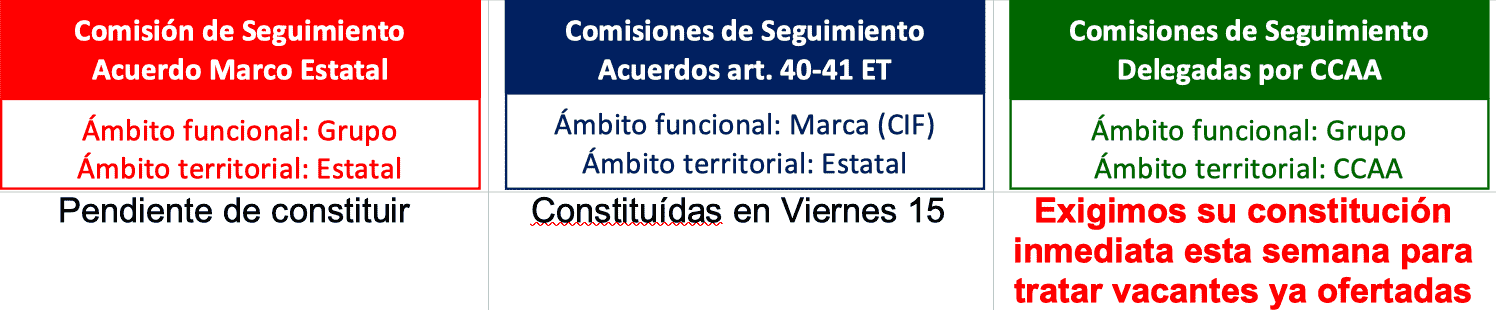 Desde el Grupo Inditex se comprometieron a proceder a dicha constitución esta misma semana, al tiempo que nos remitieron las vacantes ofertadas en 15 tiendas ya cerradas o de cierre inminente, que desde CCOO exigimos tratar de forma urgente en las respectivas Comisiones de Seguimiento territoriales.