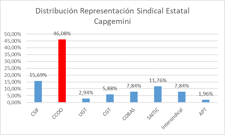 Tras estos resultados, CCOO-Capgemini sigue ostentando laposición de sindicato más representativo en el conjunto de la compañíacon un total de 47 delegados y delegadas.