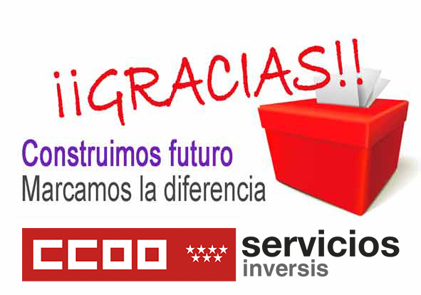 Damos las gracias a todas las personas que han confiado en la candidatura de CCOO que trabajará con dedicación y convicción en defender los derechos y las condiciones laborales de toda la plantilla.