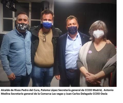 La pasada semana, tuvimos la oportunidad de poner en conocimiento de la situación al Alcalde de Rivas, Pedro del Cura, a Paloma López, Secretaría General de CCOO Madrid y a Antonio Medina, Secretario General de la Comarca Las Vegas. Nos trasladaron su apoyo y nos abrieron su puertas para desbloquear la situación.