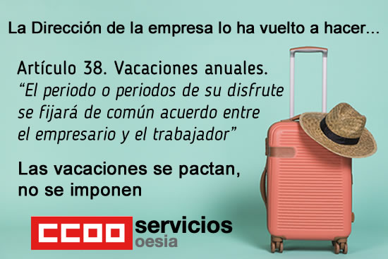 Desde CCOO queremos informaros sobre la regulación existente en materia de vacaciones, una vez que la Dirección ha comunicado “su” normativa sin consultar ni informar a la Representación Sindical y que desde CCOO entendemos como una RECOMENDACIÓN.