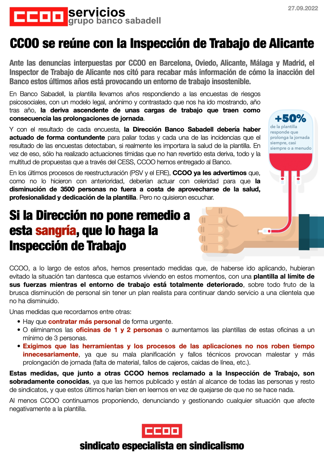 CCOO nos reunimos con la Inspección de Trabajo de Alicante