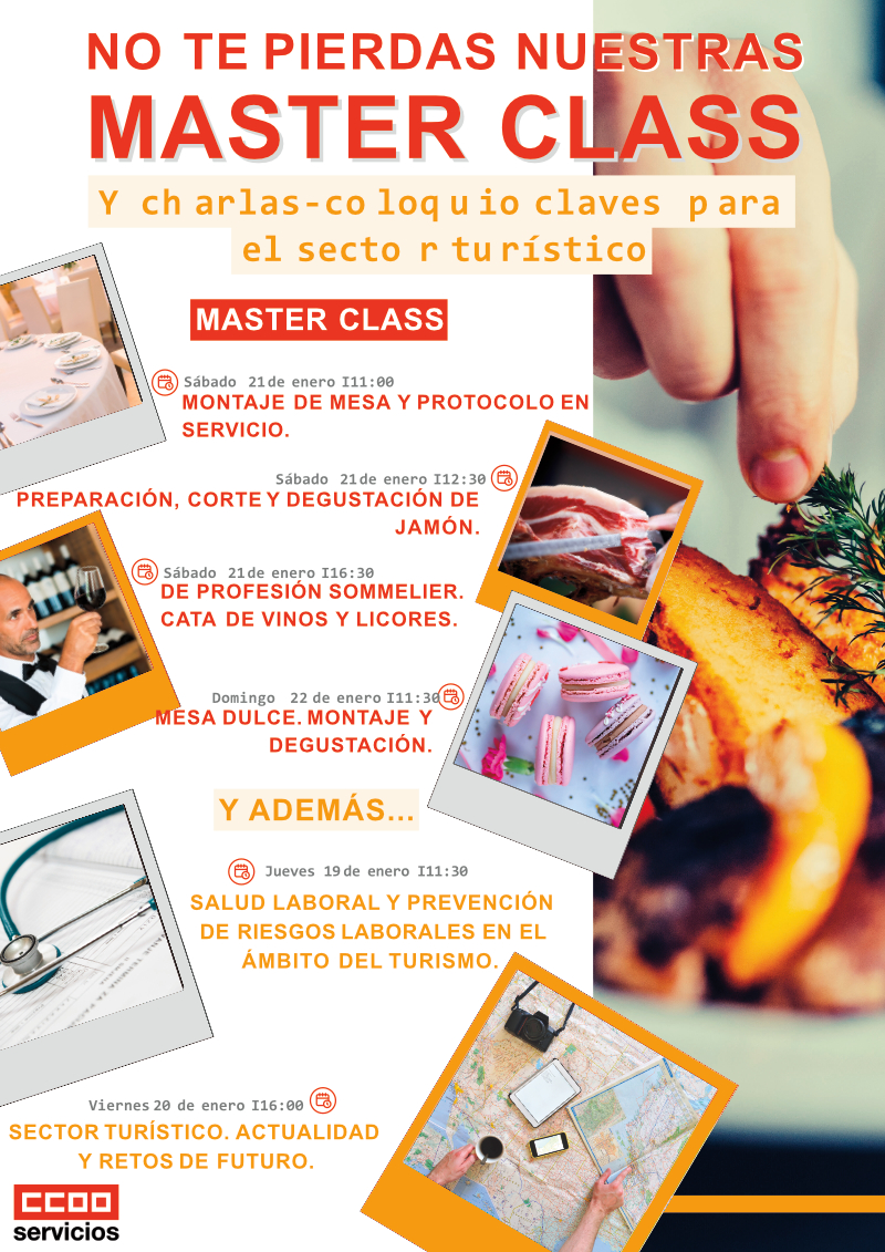 Con motivo de esta iniciativa, el sindicato ha preparado diversos eventos, charlas y masterclass, entre ellas tenemos que destacar la charla – coloquio sobre el "Sector Turístico, actualidad y retos de futuro", que tendrá lugar el viernes 20 a las 16:00 y en la que participara la Exc, Sª. Dª. María Reyes Maroto Illera, Ministra de Industria, Comercio y Turismo junto con el Secretario General de la Federación de Servicios de CCOO, José María Martínez.