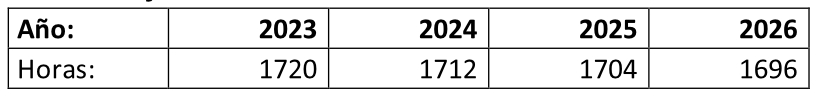 - Reducción horas de jornada máxima anual: