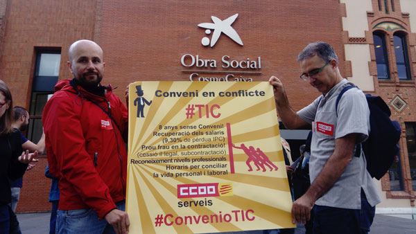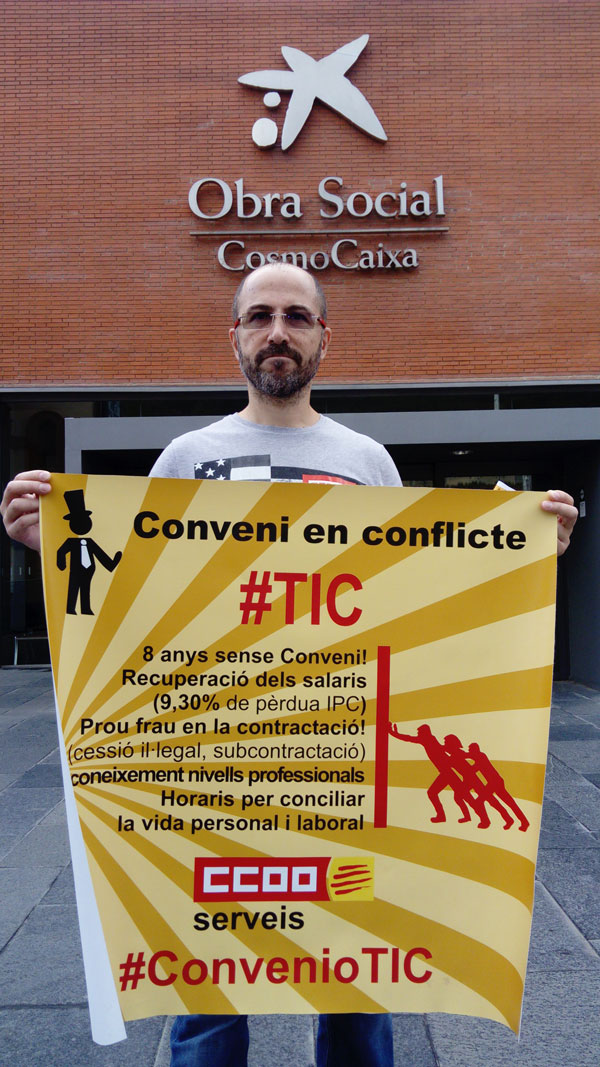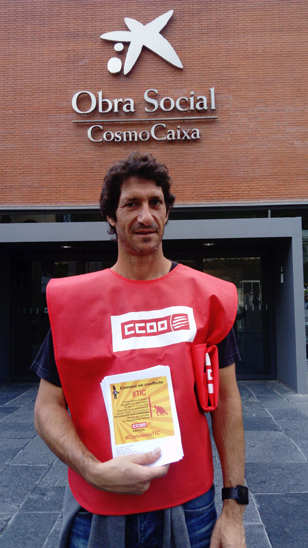 Fotografías de la concentración de CCOO en la "Diada TIC" en el CosmoCaixa de Barcelona, por un #ConvenioTICdigno