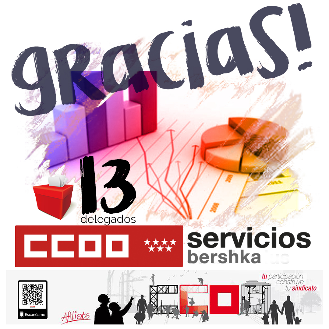 Gracias al apoyo y a la confianza de la plantilla, hemos conseguido, que actualmente la totalidad de la representación del comité, sea de CCOO, habiendo obtenido los 13 representantes a elegir.