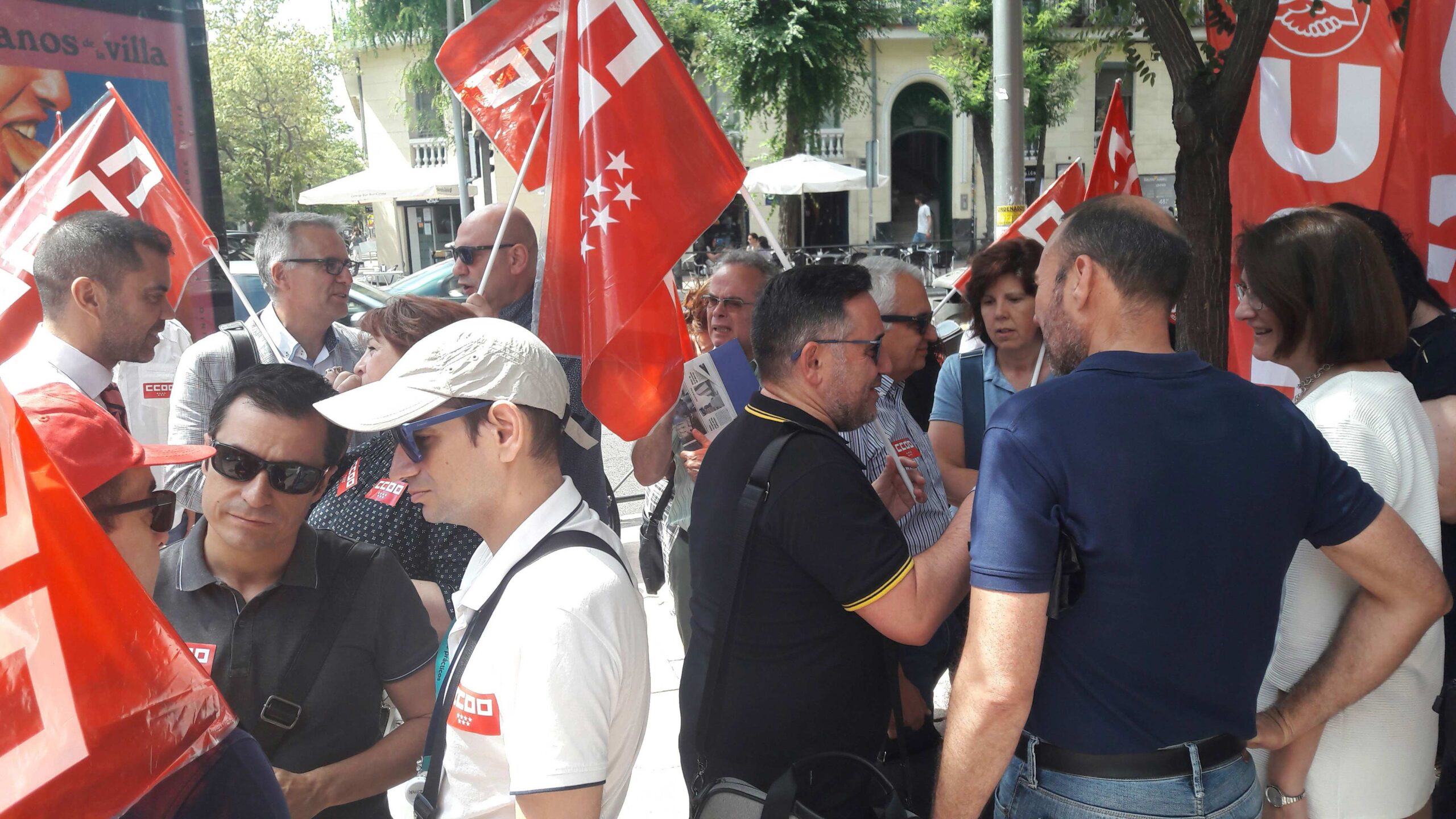 Este viernes, CCOO se ha concentrado en la oficina de BANCO CAIXA GERAL de Madrid por la intención de venta a un tercero de la mencionada empresa y la previsible repercusión en la plantilla de Banco Caixa Geral S.A.Frente a la oficina de Diego de León 23, CCOO volverá a exigir una reunión al presidente de la entidad, Francisco Rayara Cary, con la representación legal de los trabajadores y trabajadoras en la que informe sobre las noticias venta del banco que sólo conocen a través de los medios de comunicación.