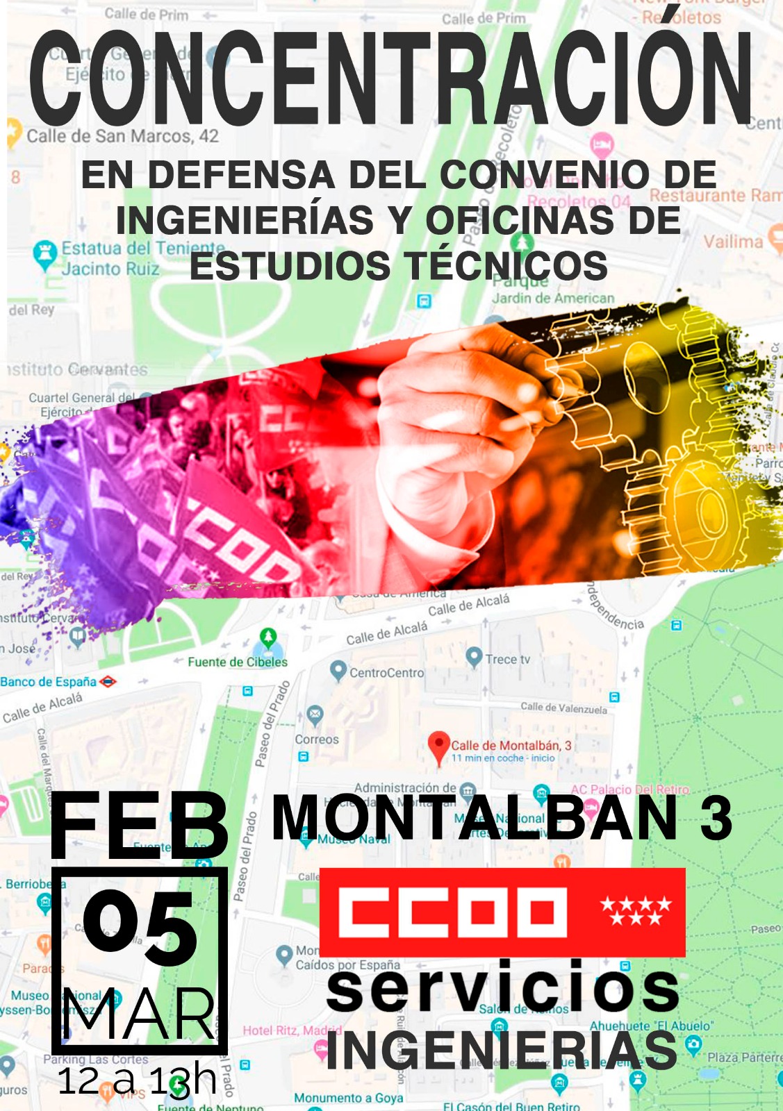 • CCOO ha convocado concentración en defensa del Convenio Colectivo de Ingenierías y Oficinas de Estudios Técnicos por que la patronal del sector no quiere convenio.