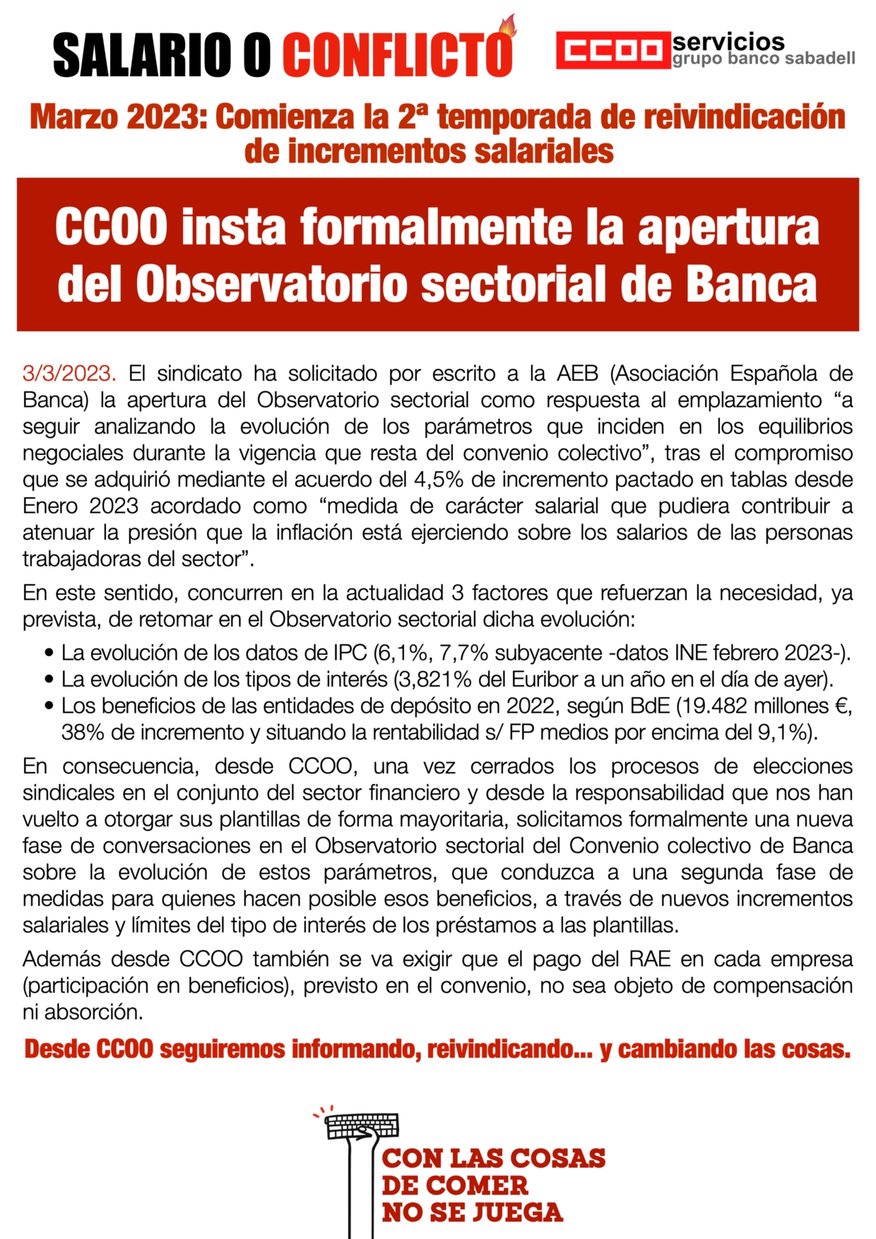 CCOO solicitamos a la AEB la apertura del Observatorio de Banca