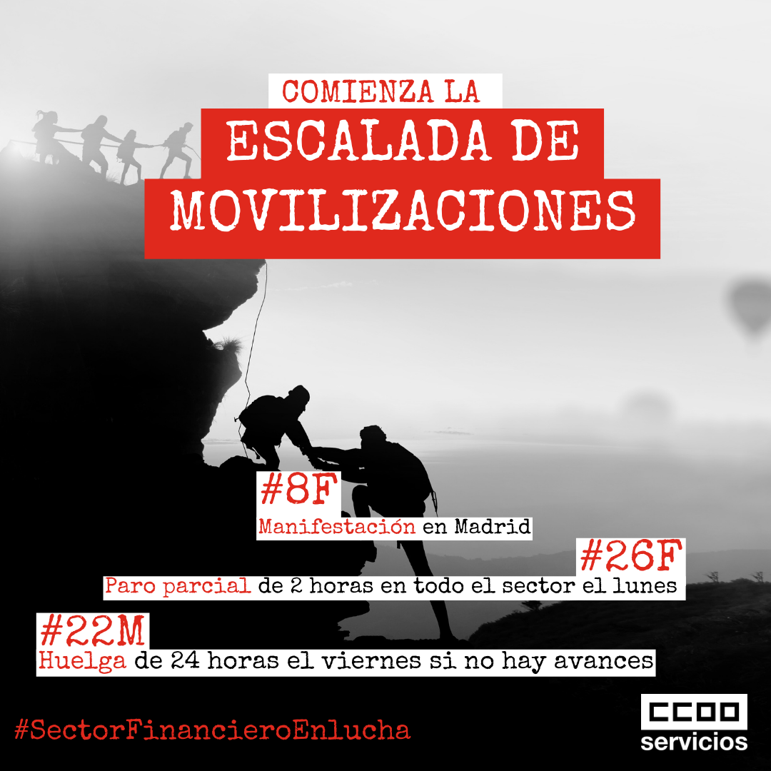 CCOO, UGT y FINE hacemos un llamamiento a las plantillas del sector financiero a que participen para exigir a las patronales que reconozcan su esfuerzo y contribución a los beneficios obtenidos e invitan a los otros sindicatos presentes en las Mesas respectivas a que secunden las movilizaciones.
