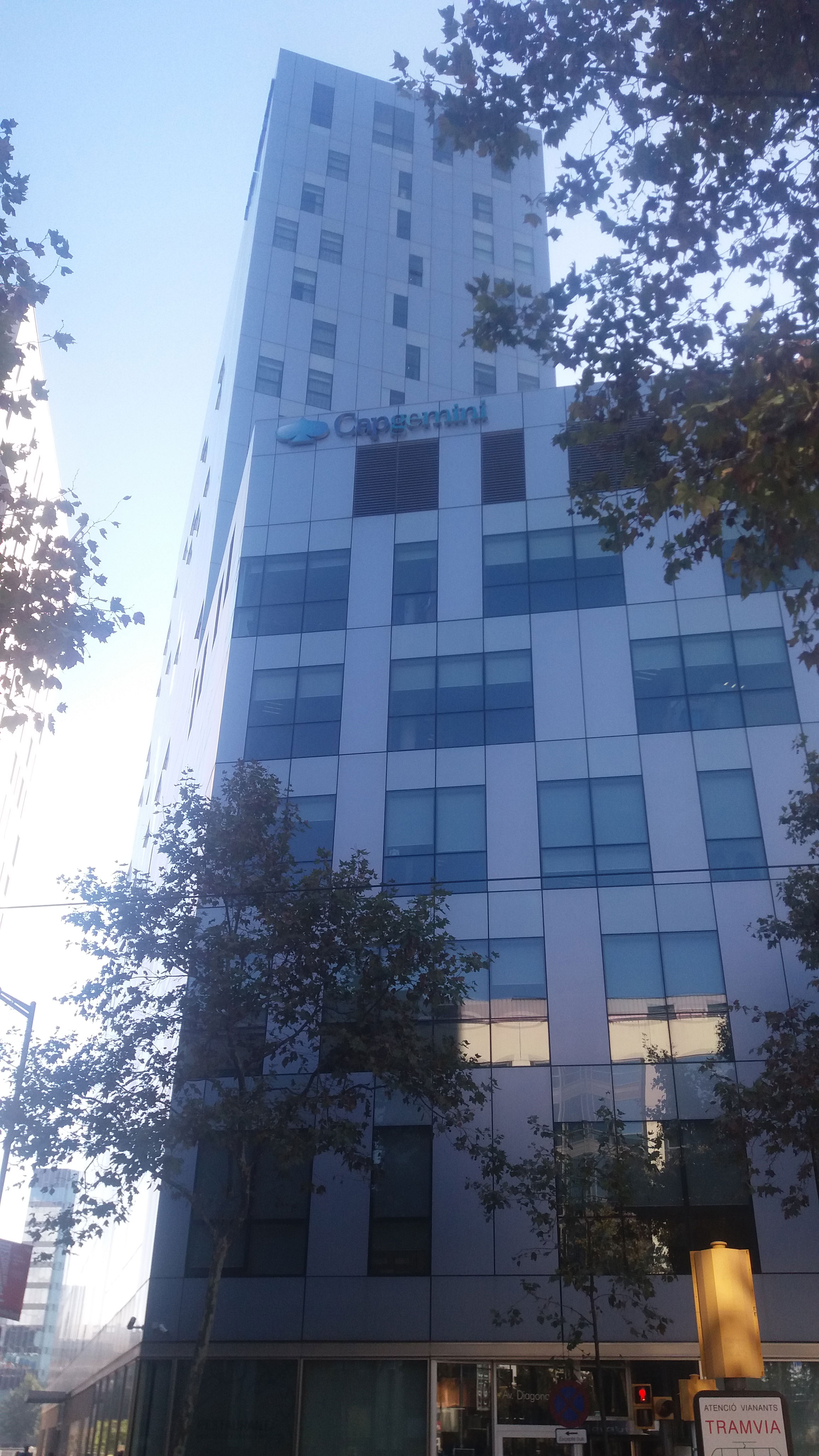 Esta sede de Capgemini está situada concretamente en la Avenida Diagonal 199, frente al centro comercial Glorias y comparte edificio con uno de los Hoteles de la cadena Novotel. Las oficinas constan de 5 plantas de unos 100m2 todas ellas de similares características.