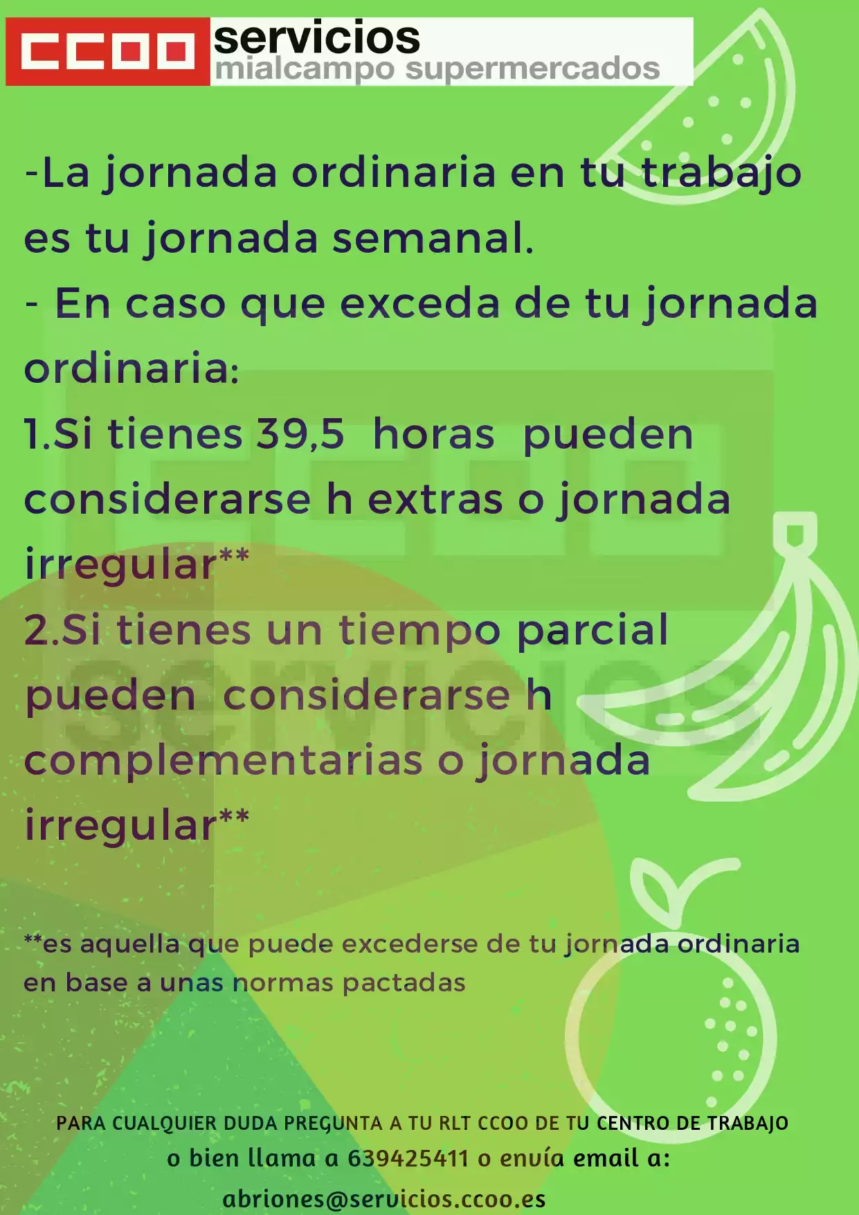 El pasado 13 de noviembre de 2019 se mantuvo reunión de la COMISIÓN DE HORARIOS, tratándose como único punto CALENDARIOS LABORARALES 2020. Se firma para los supermercados y/o tiendas con un promedio de 6 días trabajados y para las tiendas 7 de 7 (excepto Madrid que tienen acuerdos firmados por el comité de empresa, donde no estamos; se le ha solicitado a la empresa estos acuerdos).