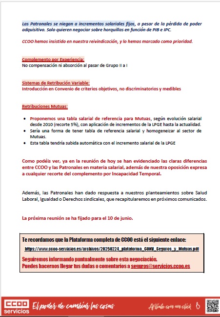En la 6ª reunión de la Comisión Negociadora del Convenio Colectivo de Seguros, Reaseguros y Mutuas, celebrada el 21.05.2025, se han evidenciado las enormes diferencias entre CCOO y las Patronales en materia salarial.