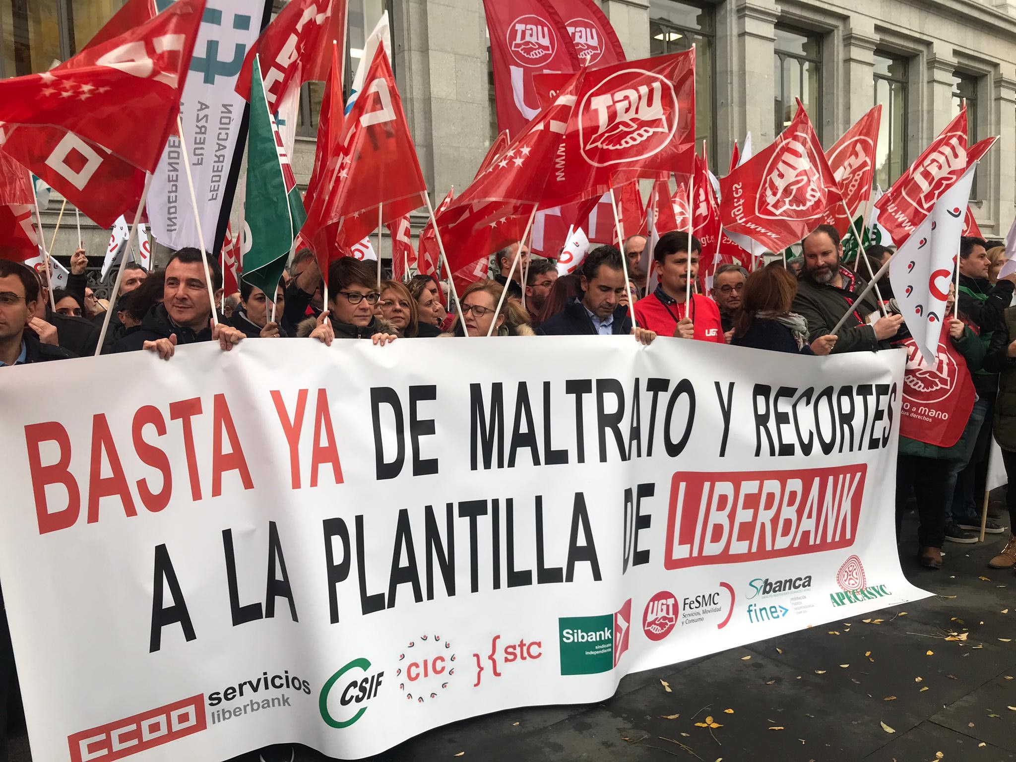 Masiva concentración de delegados y delegadas en la sede del Banco de España en Madrid, con el lema "Basta ya de maltrato y recortes a la plantilla de Liberbank". En dicha concentración estuvimos presentes los representantes de los trabajadores de CCOO de los distintos territorios de España, junto a los compañeros y compañeras de de las secciones sindicales de CSIF, STC-CIC, SIBANK,UGT, SIBANCA y APECASYC, en una muestra más de la unidad sindical existente frente al comportamiento de esta entidad.