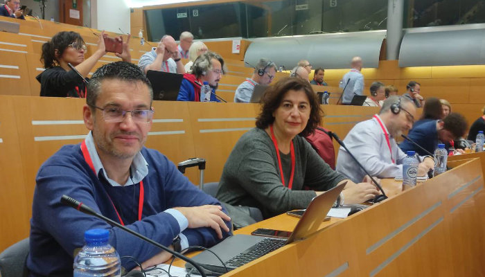 Esther Lynch, vicesecretaria de la Confederación Europea de Sindicatos, expuso el trabajo que se está llevando a cabo en el seno de la CES, donde las experiencias nacionales están sirviendo de base para un planteamiento a escala europea. A nivel de la UE, el desafío a los intereses de la clase trabajadora planteado por los grupos políticos de extrema derecha, es significativo. La izquierda se está reduciendo, la derecha está creciendo. En el Parlamento Europeo hemos constatado un aumento importante de grupos de extrema derecha que ya representan un tercio de los diputados y diputadas.