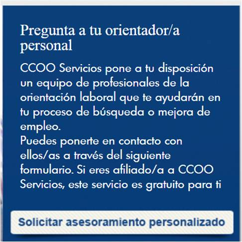 CCOO Servicios pone a tu disposición un equipo de profesionales de la orientación laboral que te ayudarán en tu proceso de búsqueda o mejora de empleo.