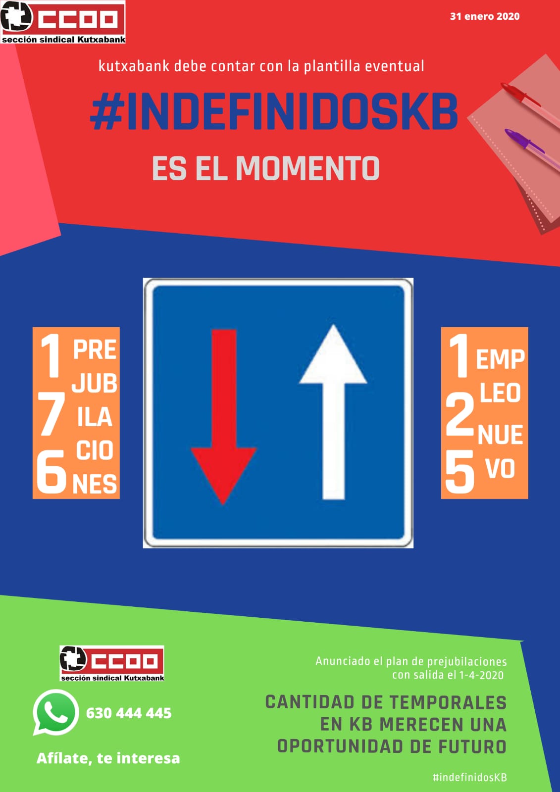 Llegan las ansiadas prejubilaciones a Kutxabank y las no menos deseadas contrataciones de empleo indefinido, una gran oportunidad para la plantilla temporal. Continuamos con nuestra campaña #indefinidosKB