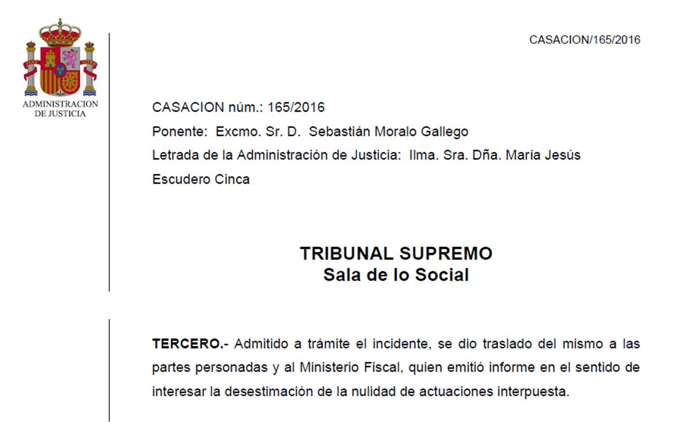 Comunicamos a la plantilla afectada por la sucesión empresarial que el Tribunal Supremo ha desestimado el Incidente de Nulidad de Actuaciones presentado tras la sentencia desfavorable de dicho Tribunal.