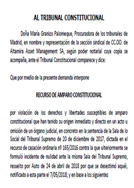 Hemos interpuesto , tal y como estaba previsto, en nuestra hoja de ruta judicial Recurso de Amparo en el Tribunal Constitucional fundamentado en el Art. 24.1 C.E. sobre el derecho a la tutela judicial efectiva reflejando en el mismo la especial trascendencia jurídica de nuestra demanda.