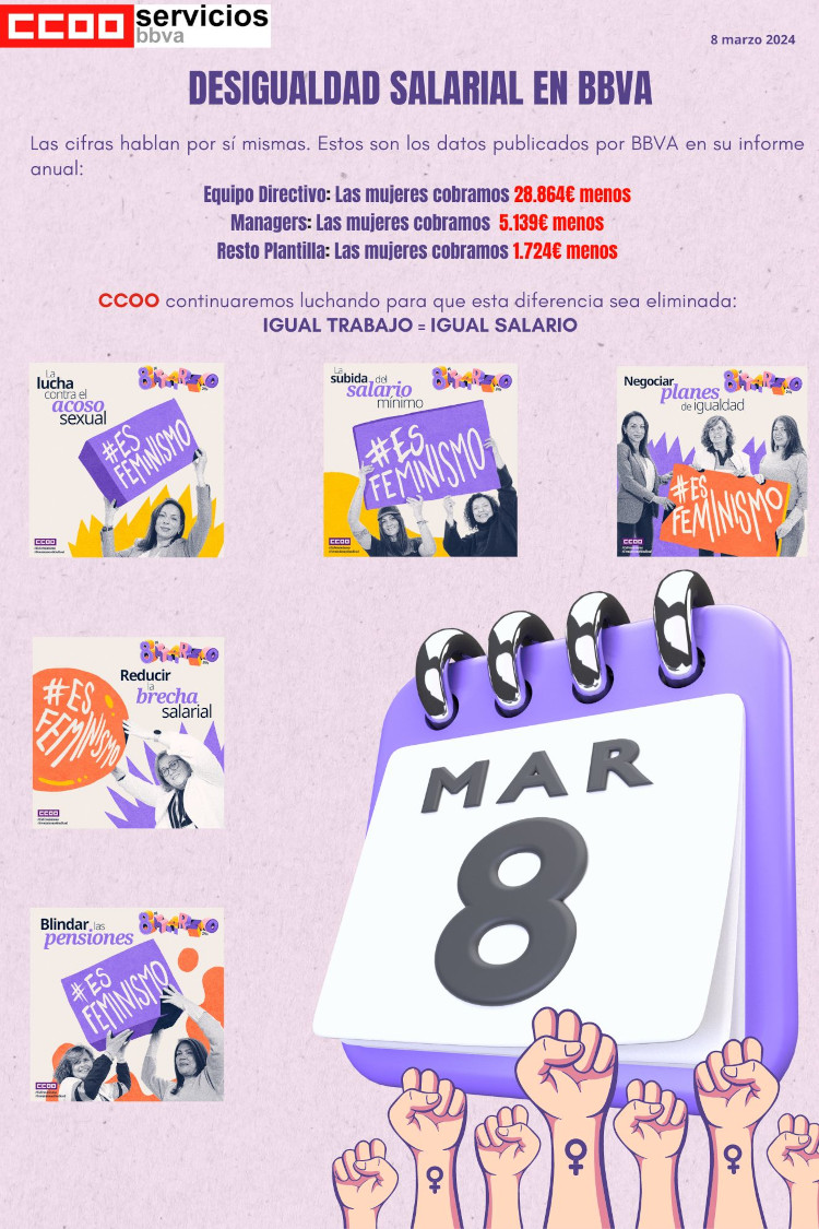 Las cifras hablan por sí mismas: Las mujeres en BBVA continuamos cobrando menos que los hombres.