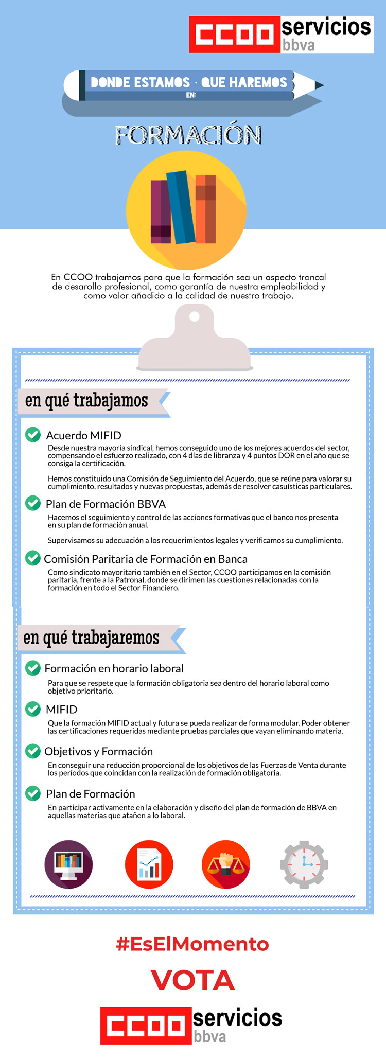 En CCOO trabajamos para que la formación sea un aspecto troncal de desarollo profesional,como garantía de nuestra empleabilidad y como valor añadido a la calidad de nuestro trabajo.