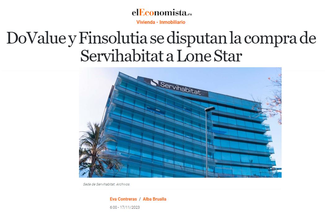 elEconomista – DoValue y Finsolutia se disputan la compra de Servihabitat a Lone Star