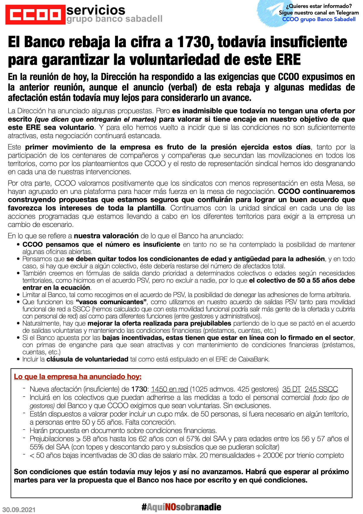 El Banco rebaja la cifra a 1730, todavía insuficiente para garantizar la voluntariedad de este ERE