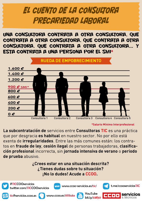 Una consultora contrata a otra consultora, que contrata a otra consultora, que contrata a otra consultora, que contrata a otra consultora… Y ésta contrata a una persona por el SMI (Salatio Mínimo Interprofesional).