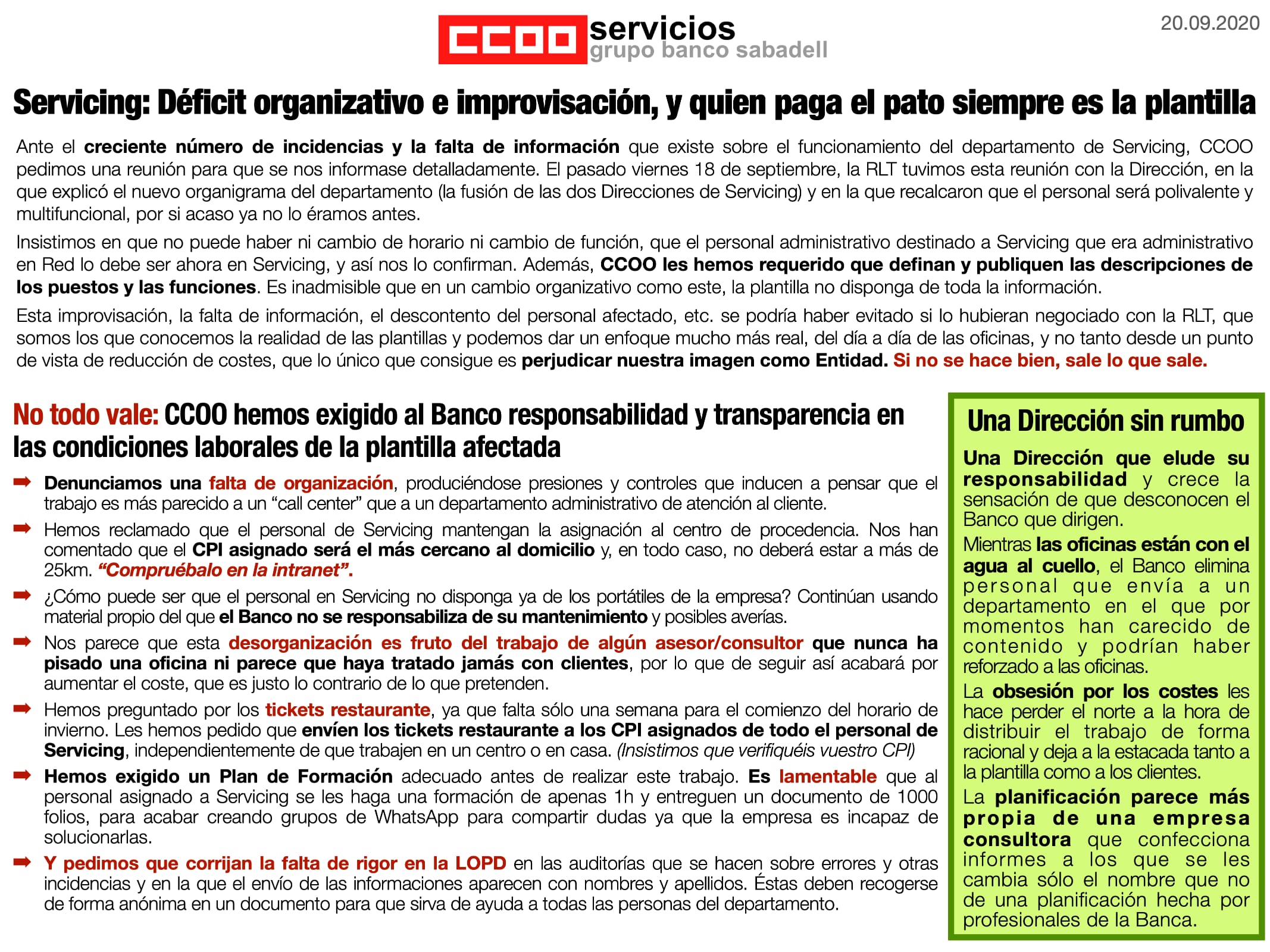 El departamento de Servicing en Banco Sabadell: desorganización e improvisación