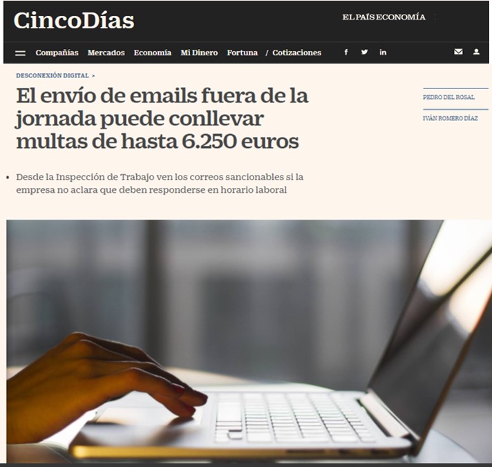 Cinco Días – El envío de emails fuera de la jornada puede conllevar multas