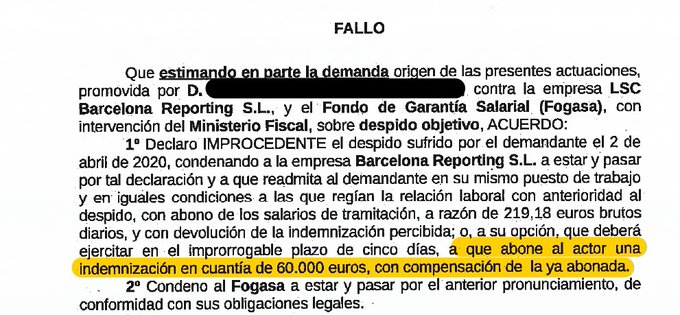 El Juzgado Social 26 de Barcelona, ante varias demandas por despido interpuestas por los servicios jurídicos de CCOO, ha dictado una sentencia que reconoce la improcedencia de los despidos en LSC Barcelona Reporting, pero además establece una indemnización muy superior a la establecida por la improcedencia en el artículo 56 del Estatuto de los Trabajadores.