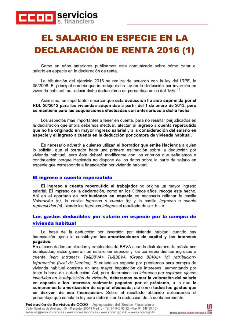 Como en años anteriores publicamos este comunicado sobre cómo tratar el salario en especie en la declaración de renta.
