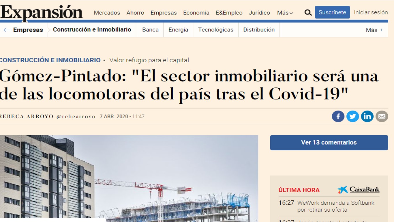 Expansión – El sector inmobiliario será una de las locomotoras del país tras el Covid-19