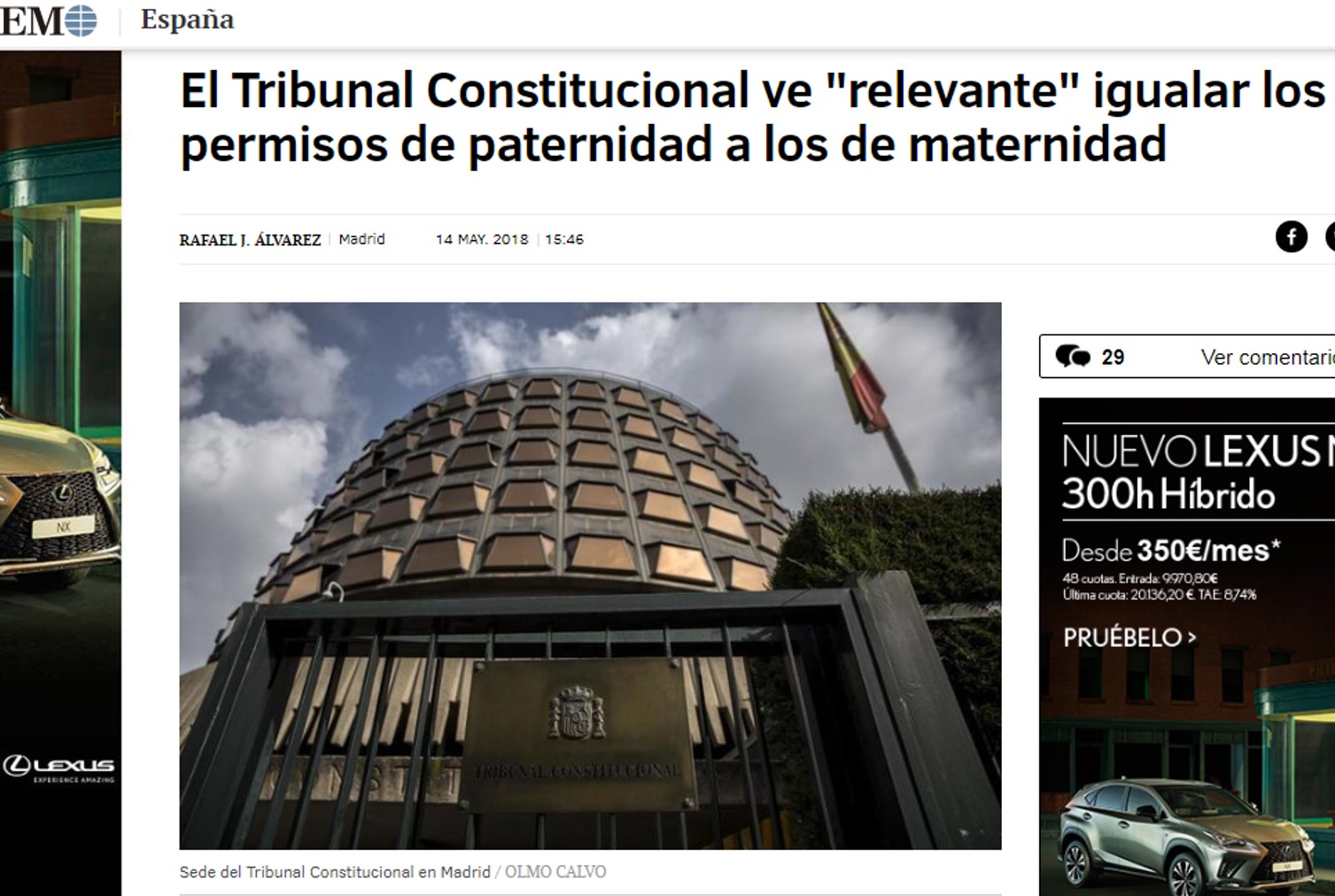 - Habla de "especial trascendencia constitucional" y admite a trámite el recurso de un padre que pide 16 semanas