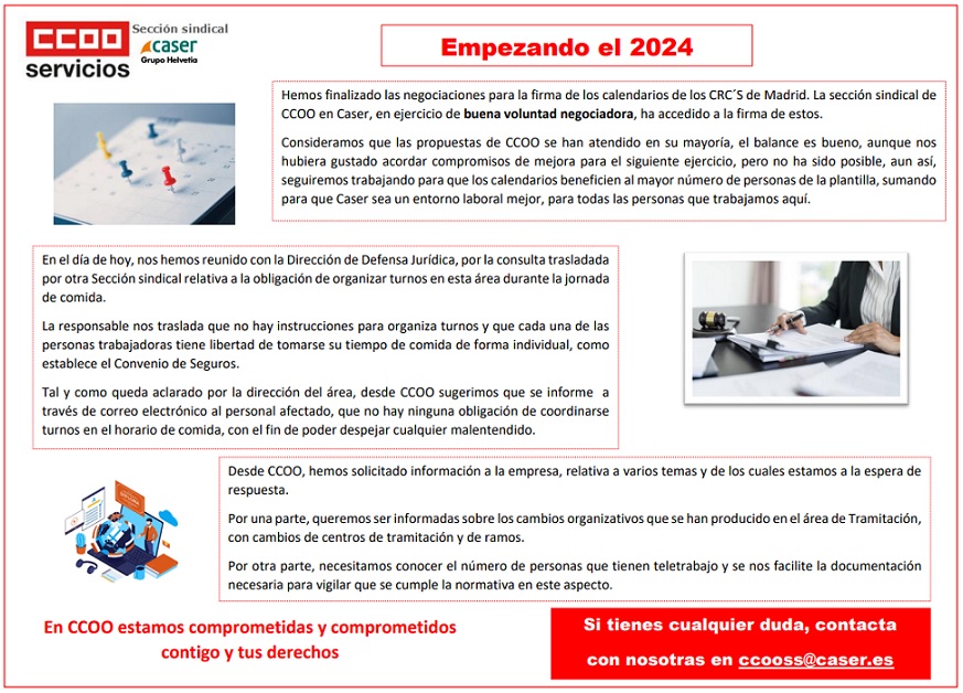 Como inicio del nuevo año, no queremos dejar de informar a la plantilla de las últimas novedades.