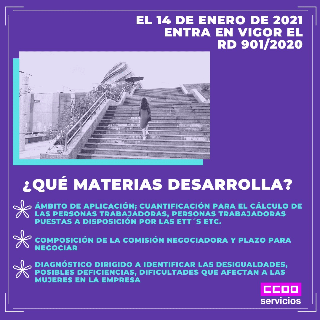 Hoy día 14 de Enero, inicia la vigencia el RD 901/2020 de 13 de octubre, por el que se regulan los planes de igualdad y su registro y se modifica el Real Decreto 713/2010, de 28 de mayo, sobre registro retributivo y depósito de convenios y acuerdos colectivos de trabajo.
