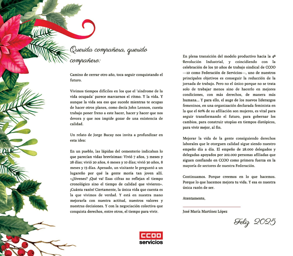 Carta del Secretario General de la Federación de Servicios de CCOO , José María Martínez López