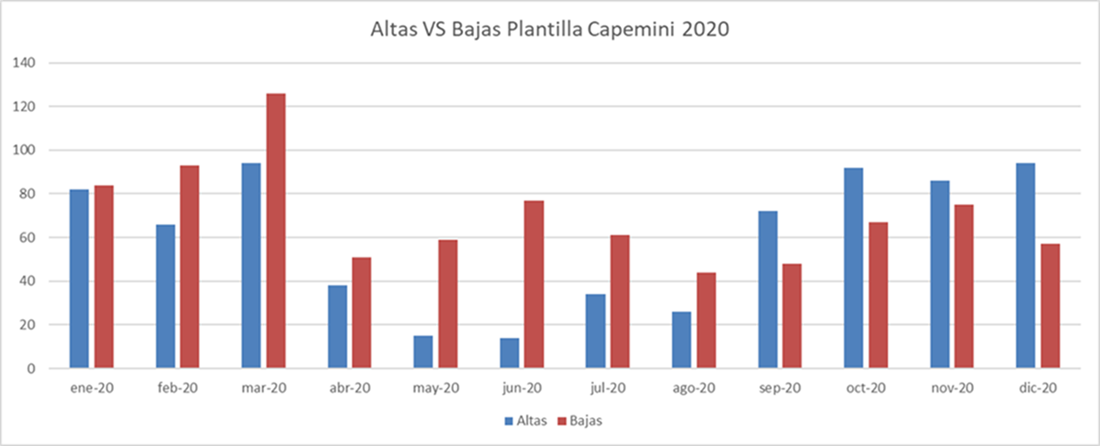 Una vez más, os compartimos actualizado, nuestro análisis de los datos referentes a la evolución de la plantilla en Capgemini durante todo el año 2020 y en comparación a otros periodos.