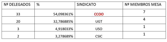 La comisión representativa queda integrada por 13  personas, cuya representatividad queda de la siguiente manera: